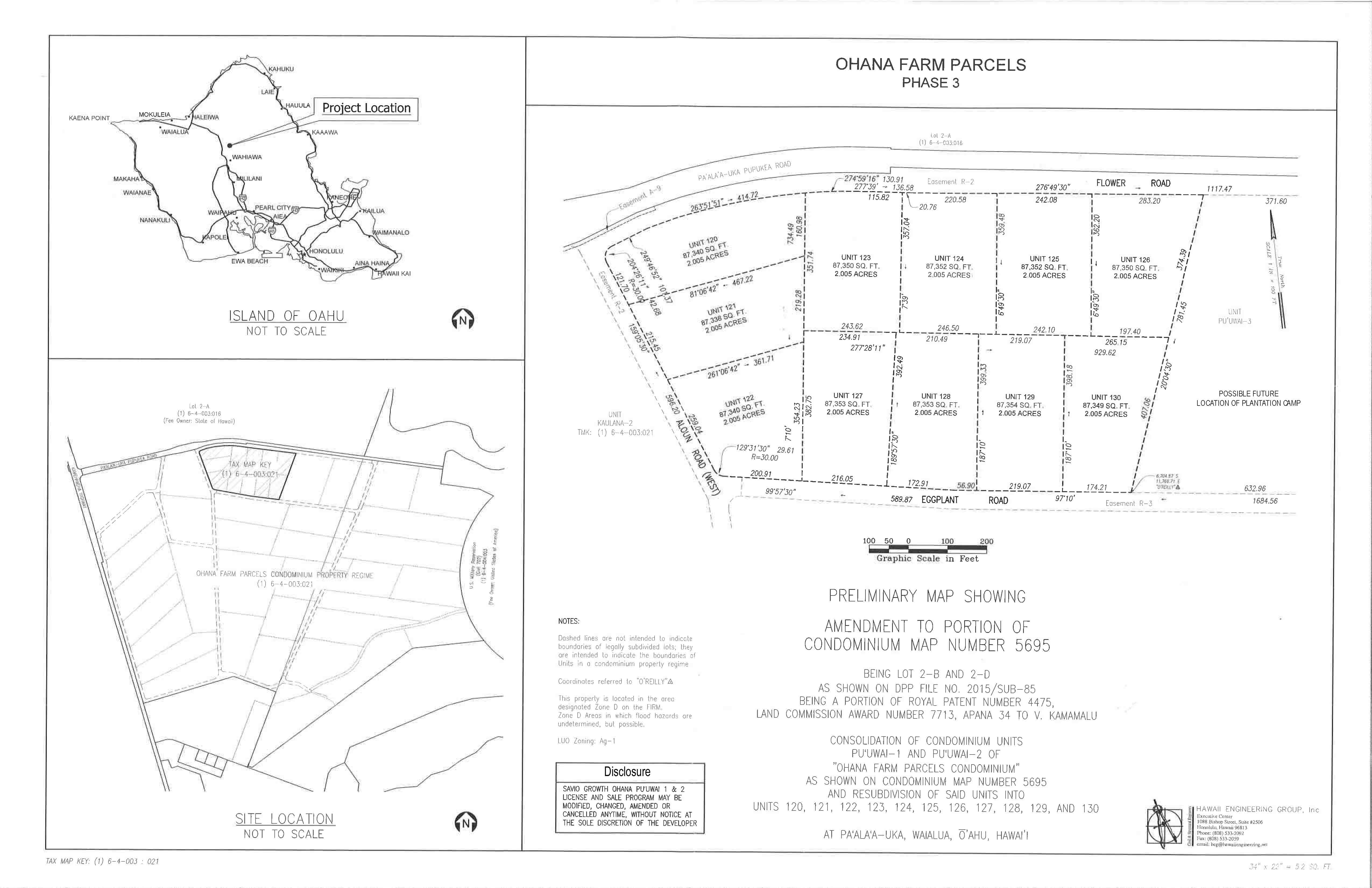 • Ohana Farm Parcels by Savio Realty Limited is approximately 120 acres and about 60 farm lots zoned AG-1 of Phase 3 sites now available for local farmers.
